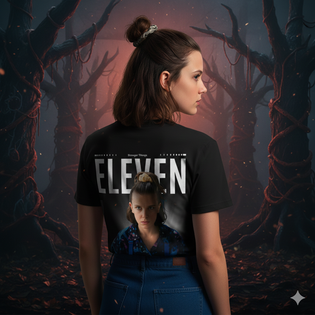 A fierce, iconic tribute to Eleven — capturing her strength, mystery, and unstoppable telekinetic power. Designed for fans who love her courage, her heart, and her unforgettable role in Stranger Things.