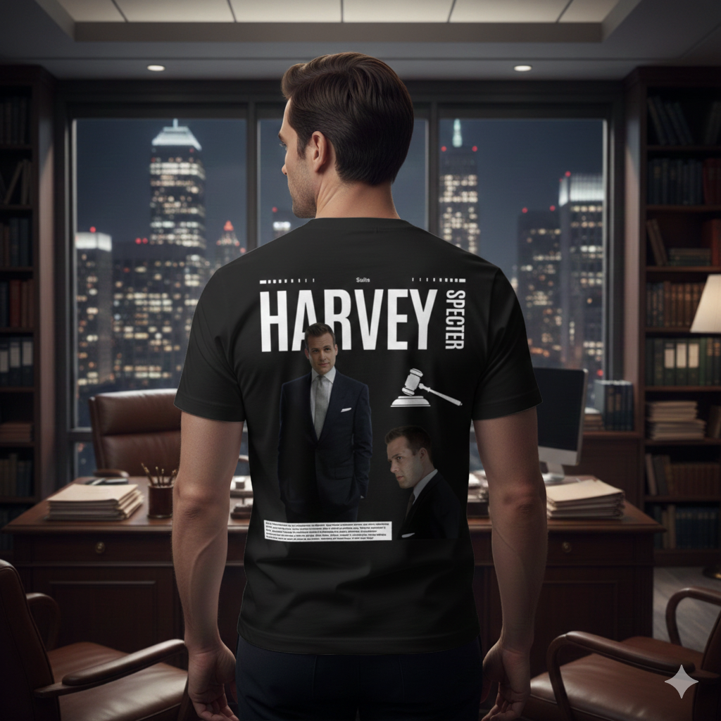A bold, unstoppable tribute to Harvey Specter — capturing his confidence, style, and legendary closer energy. Designed for fans who admire his power, precision, and iconic status in Suits.