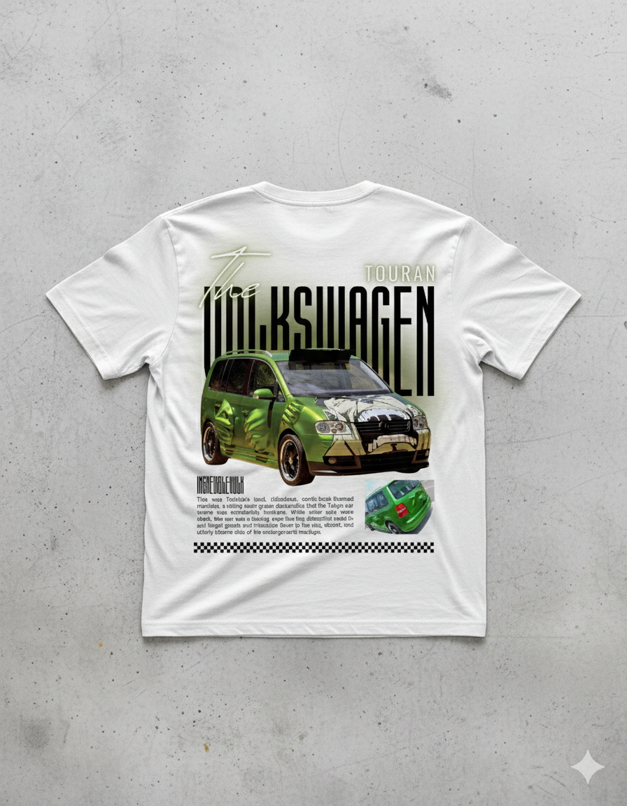 Iconic Streetwear: Twinkie’s Touran Tee. Celebrate the camouflage MVP of Tokyo Drift—Twinkie’s custom VW Touran. Featuring its unmistakable green and yellow digital camo wrap and hidden power, this shirt is for those who appreciate unique style and unexpected speed. It’s more than a minivan—it’s a statement.